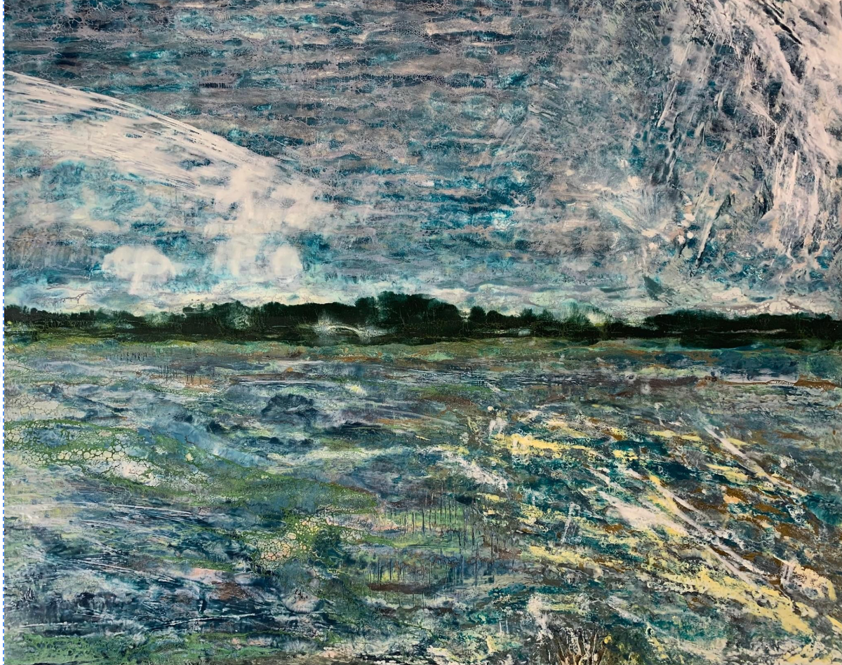 Turbulent Waters, Encaustic, Shellac, and Pigment Stick on Cradled Panel, 16" x 20"